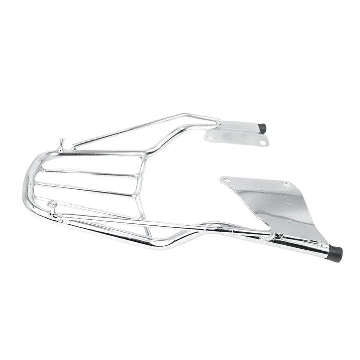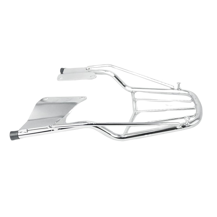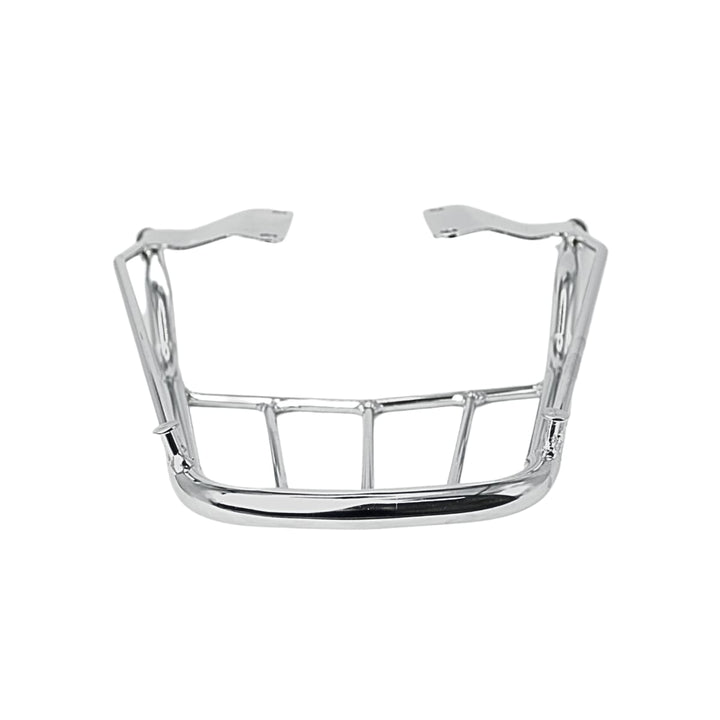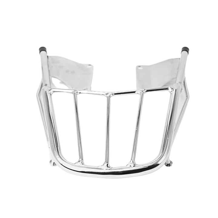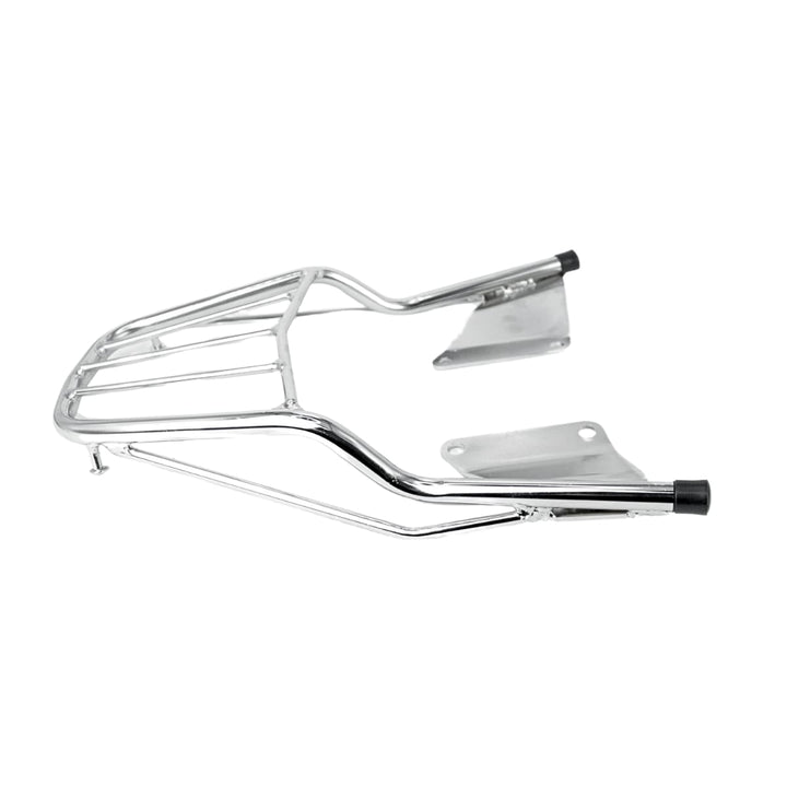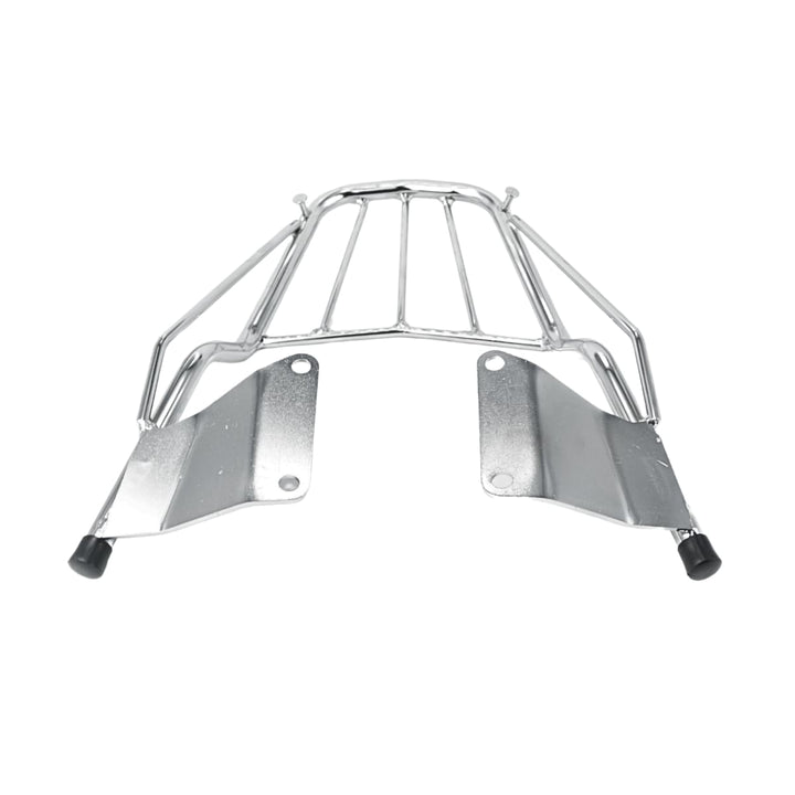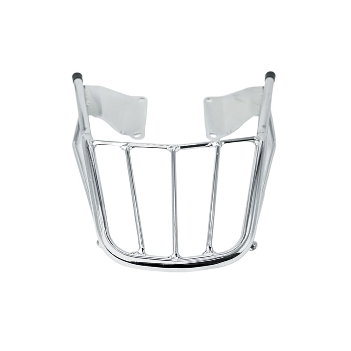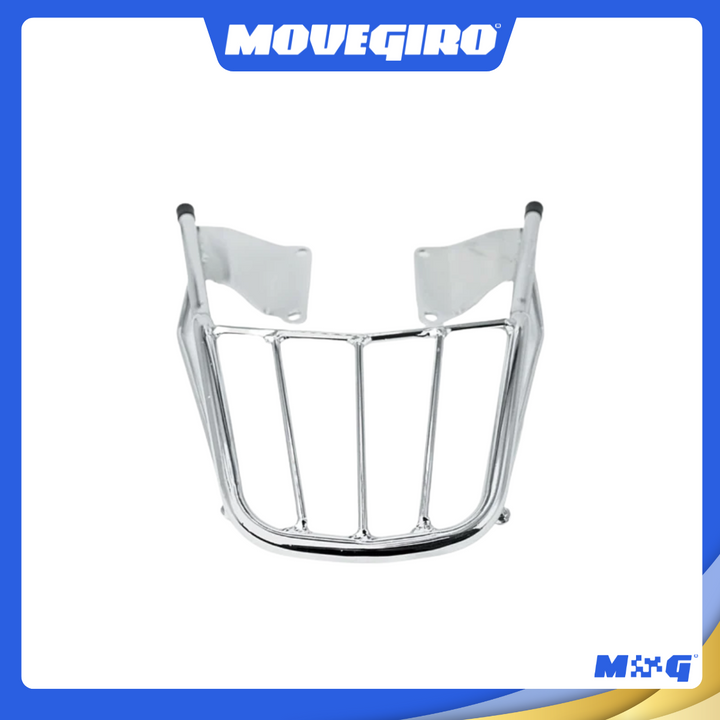 Popularmente chamado de churrasqueira de moto, grade traseira cromada ou suporte para baú, esse modelo é indicado para quem deseja instalar bauletos, mochilas ou caixas de entrega, mantendo o visual clássico da moto.