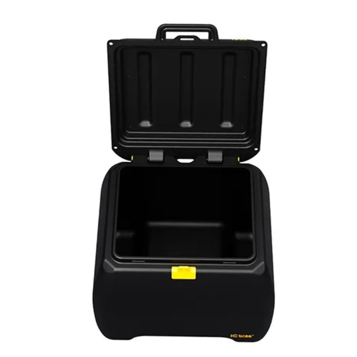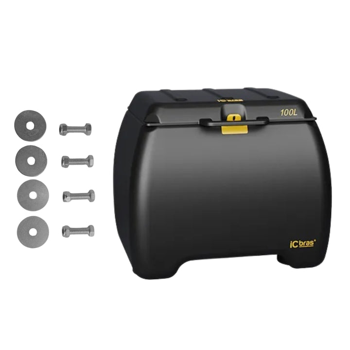 O baú ICBRAS 100L preto é ideal para motoboys, entregadores e motofrete que precisam de grande capacidade de carga com segurança.