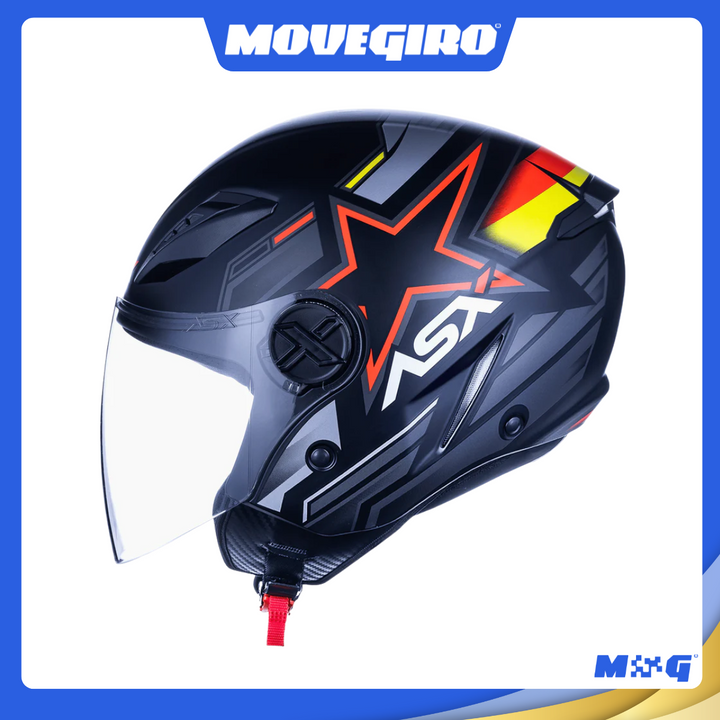 Capacete ASX City Air Pilot Fosco Preto/Vermelho/Amarelo