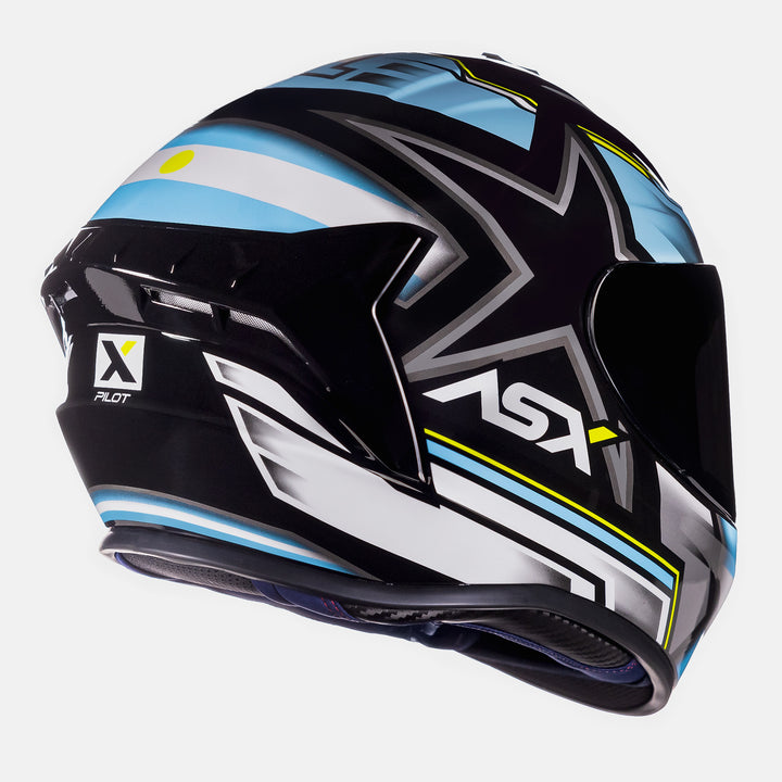 Capacete ASX Draken Pilot Brilho Preto/Azul/Amarelo