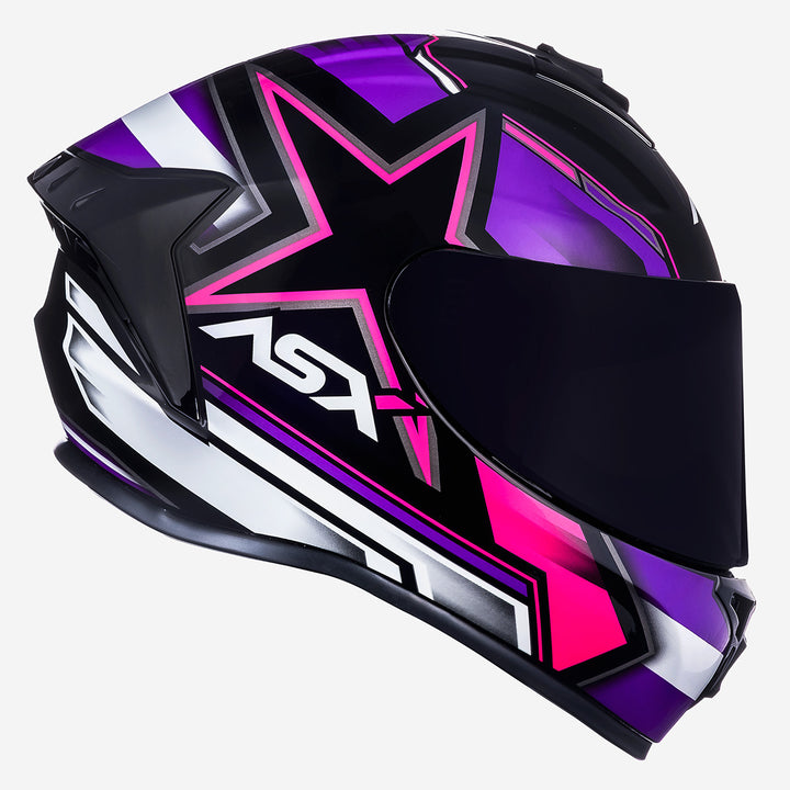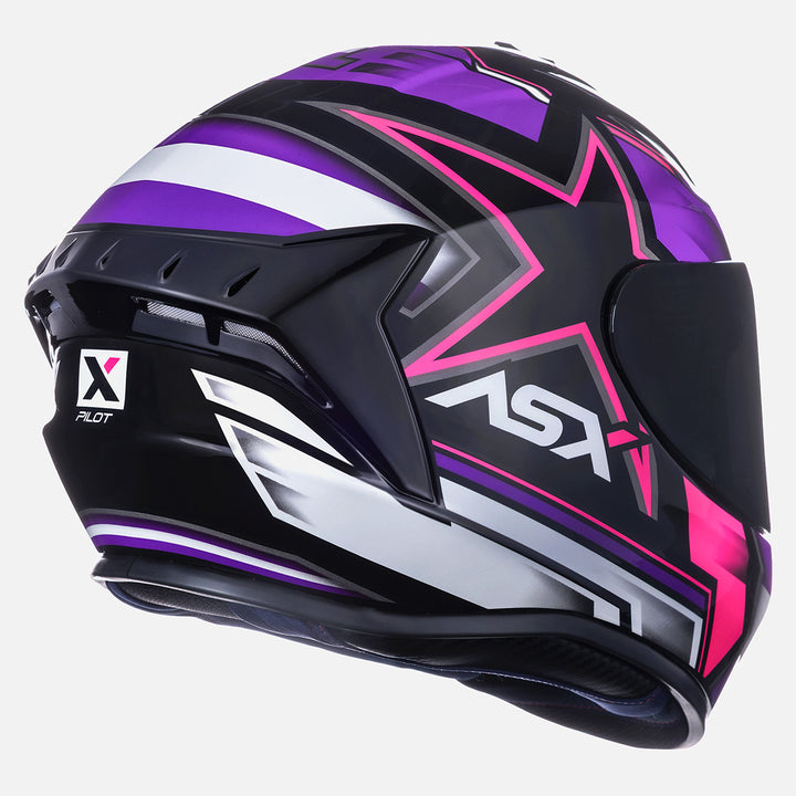 Capacete ASX Draken Pilot Brilho Preto/Lilás/Rosa