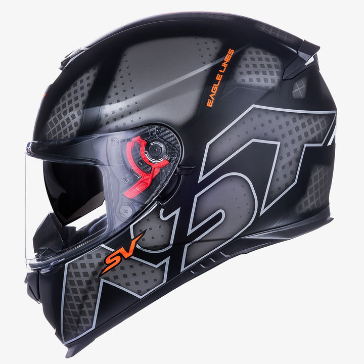 O grande diferencial da Eagle SV Lines é a viseira solar retrátil interna , que facilita a adaptação às diferentes condições de luminosidade, dispensando a troca da viseira principal. A viseira externa, em policarbonato com tratamento anti-risco , garante ampla visibilidade e alta durabilidade.