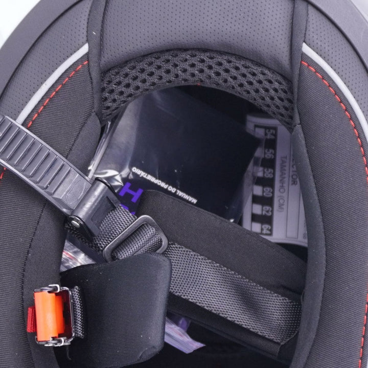 Este modelo cobre os tamanhos P ao GG (S ao XL), atendendo cabeças com circunferência entre 56 e 62 cm, conforme a tabela oficial da Race Tech: