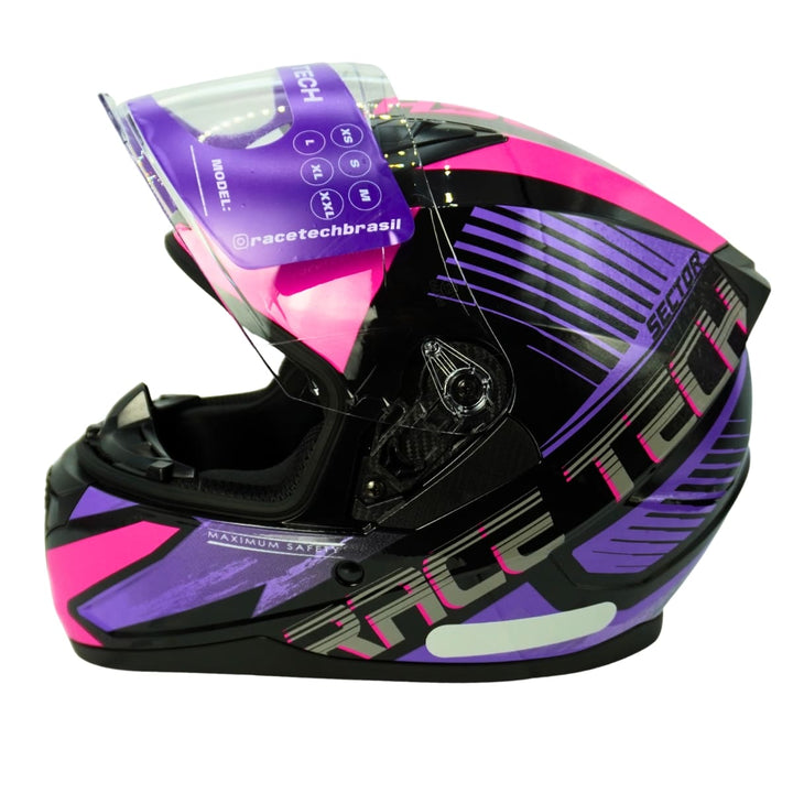 O Capacete Race Tech Sector Slash Black Purple combina alta proteção, conforto e um design moderno que traduz atitude sobre duas rodas. Criado para motociclistas que não abrem mão de segurança e identidade visual marcante.