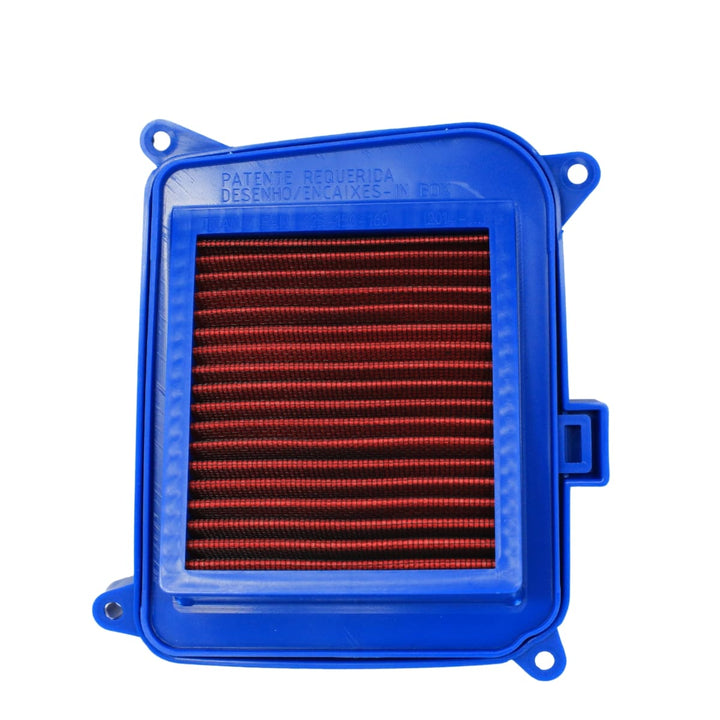 O design esportivo em azul com detalhes vermelhos chama atenção e valoriza o estilo da moto. Além disso, o filtro melhora o fluxo de ar para o motor, proporcionando aceleração mais rápida e melhor resposta. Por ser lavável, pode ser reutilizado várias vezes, evitando custos com reposição.