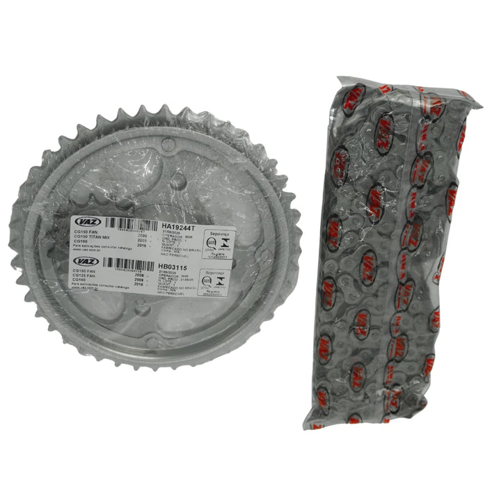 Kit coroa, pinhão e corrente VAZ 160, Kit de relação 160 com retentor,