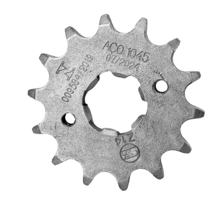 Compatível com os modelos Honda Titan 150 ES e KS , esse pinhão reforçado é ideal para revisões, personalizações de relação e trocas periódicas da corrente e coroa .
