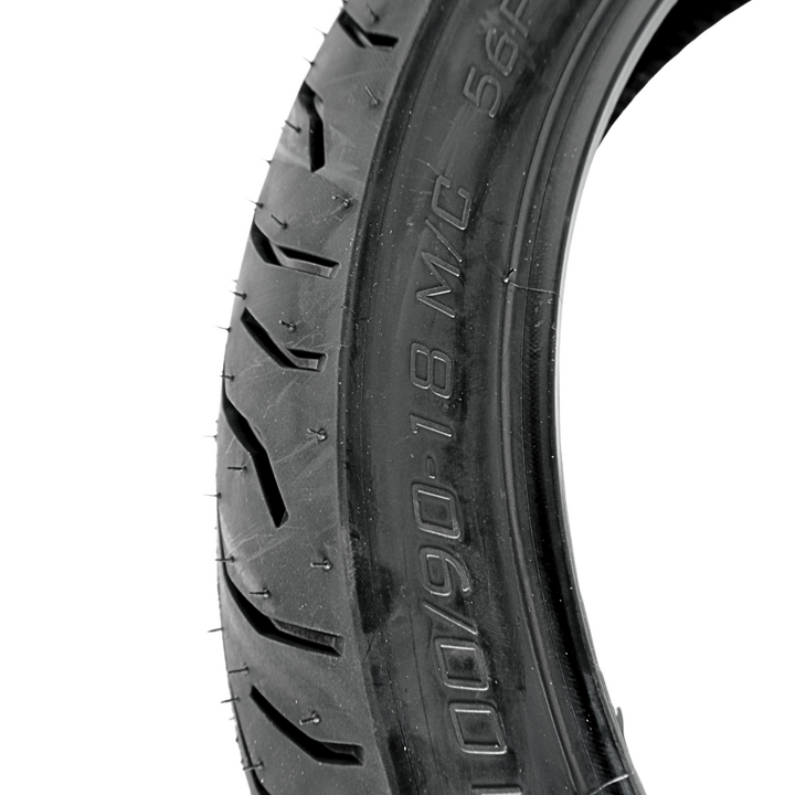 Pneu traseiro 100/90-18 sem câmara (TL), pronto para uso com rodas compatíveis